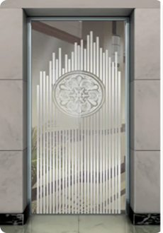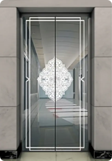 Потолок: Зеркальная нержавеющая сталь, двойная арочная акриловая пластина, светодиодная подсветка. Стены кабины: Платформа из напыляемой стали, зеркальная поверхность из нержавеющей стали с травлением. Перила: Цельная круглая труба из нержавеющей стали. Пол: ПВХ (стандартный), мрамор (опционально)..